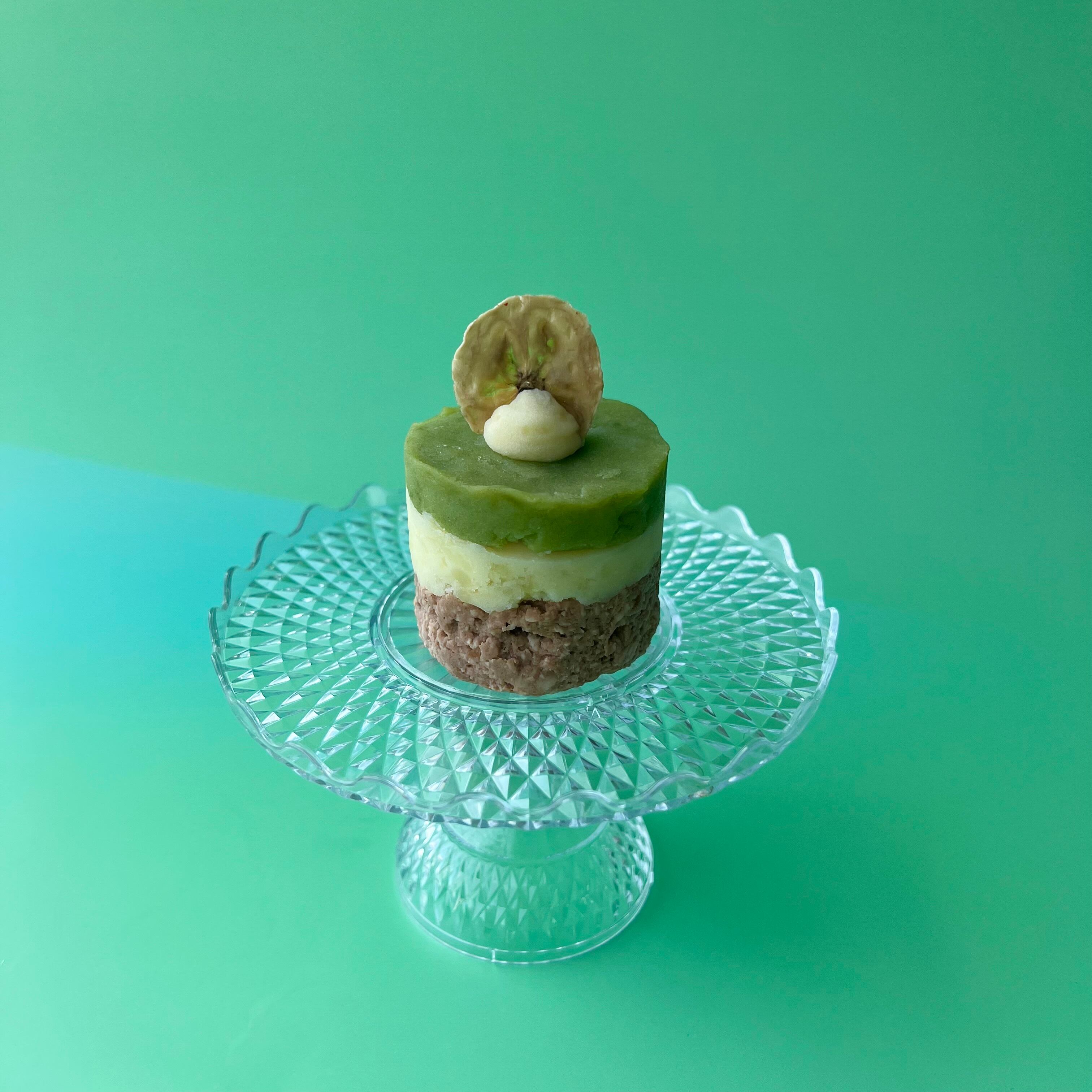 ほうれん草、じゃがいも、さつまいも、九州産鶏胸肉を使用した、わんちゃんに嬉しいケーキです。
